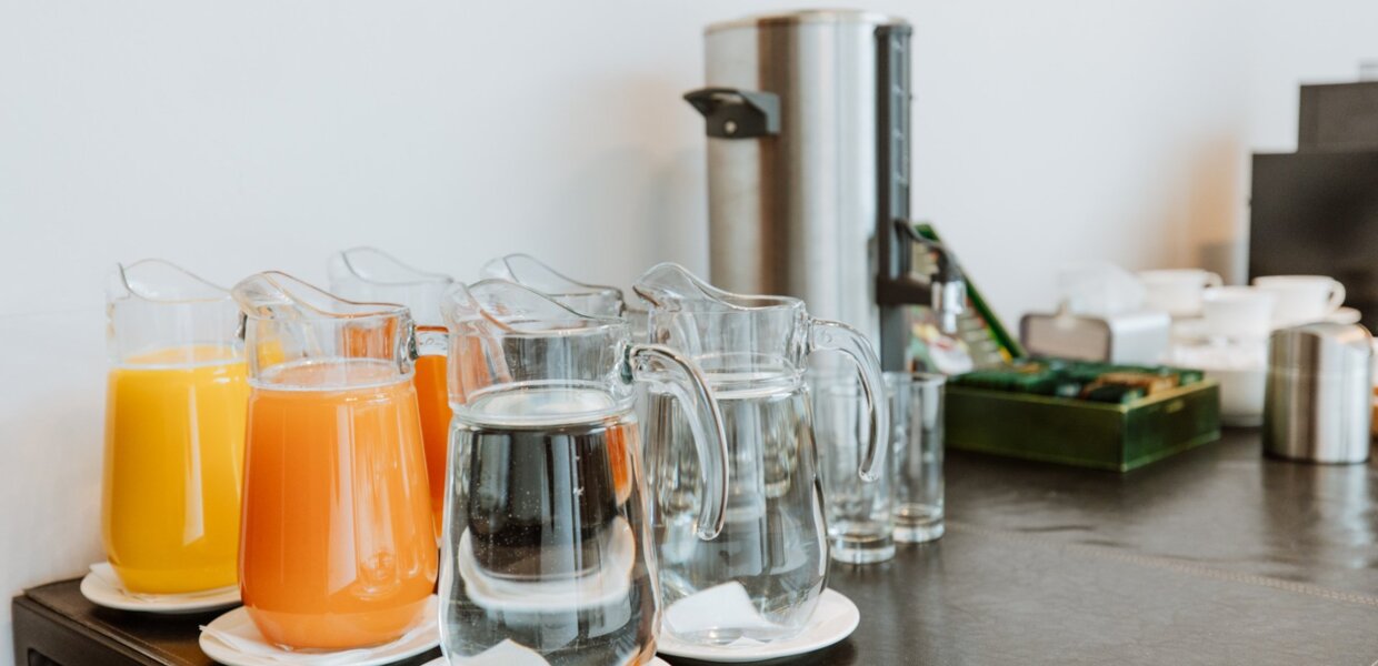 The menu inludes fresh water, bread and butter